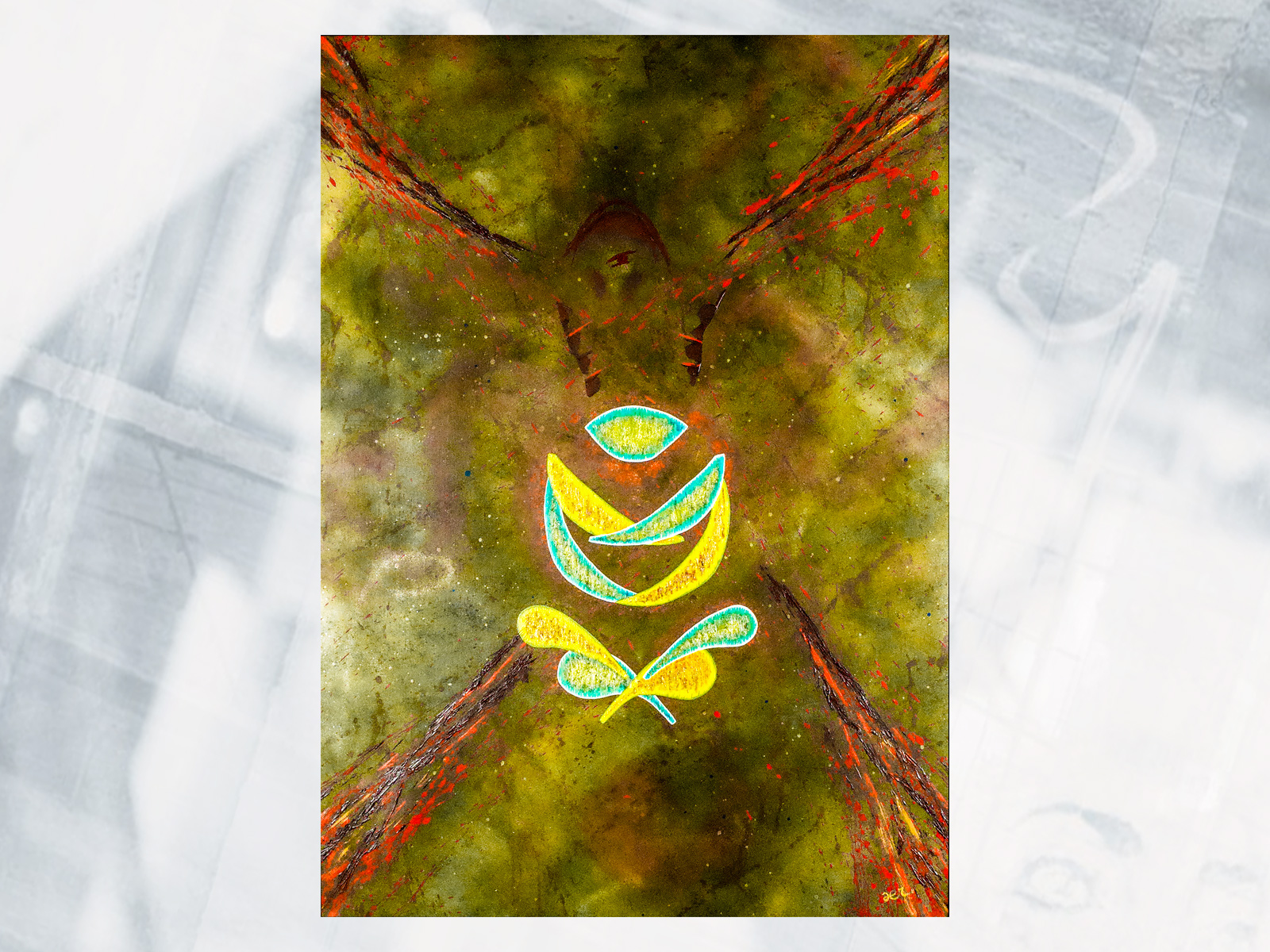This painting reflects the importance of inner sanctity amidst the chaos, noise and influence of the surrounding world.